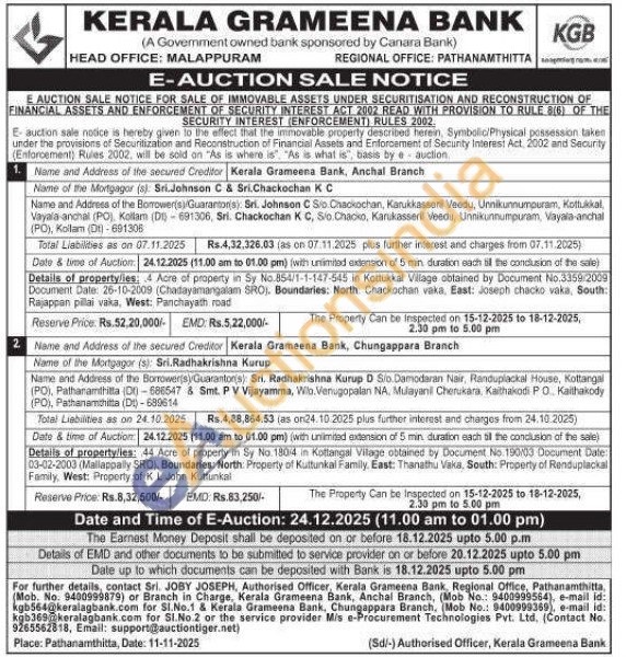 contact Sri. JOBY JOSEPH, Authorised Officer Pathanamthitta, Mob. No. 9430999879)