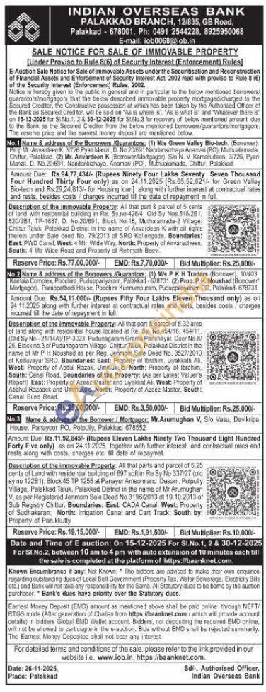 2) Al that part & parcel of 5:32 ares of land along with residential house located at Re. Sy. No 454/16, 454/11 (Old Sy No-21/14A)/TP-3023, Pudunagaram Grama Panchayat. Door No. 25. Block no. 3 of Pudunagaram Village, Chittur Taluk, Palakkad District in the name of Mr PH Noushad as per Reg. Jenmom Sale Deed No. 3527/2010 of Koduvayur SRO Boundaries: East: Property of Ibrahim, Liyakkath Ali West: Property of Abdul Razak, Ummukuls, North: Property of Ibrahim South: Canal Road. Boundaries of the Property: (As per Latest Valeer's Report East: Property of Azeez Master and Liyakkat Af. West: Property of Abdhul Razaack and Ummukuls, North: Property of Azeez Master, South: Canal Bund Road