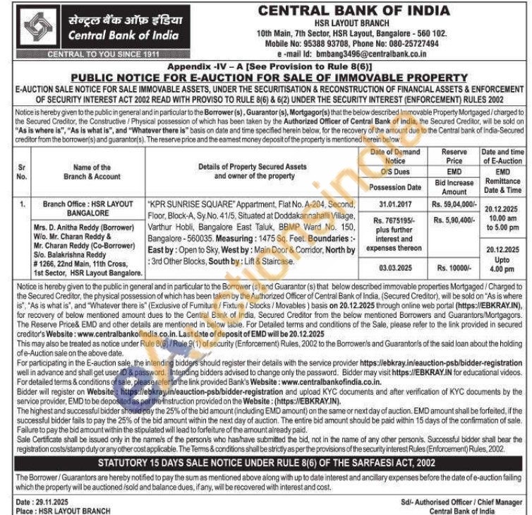 "KPR SUNRISE SQUARE" Appartment, Flat No. A-204, Second, Floor, Block-A, Sy. No. 41/5, Situated at Doddakannahalli Village, Varthur Hobli, Bangalore East Taluk, BBMP Ward No. 150, Bangalore-560035. Measuring: 1475 Sq. Feet. Boundaries:-East by: Open to Sky, West by: Main Door & Corridor, North by 3rd Other Blocks, South by: Lift & Staircase.