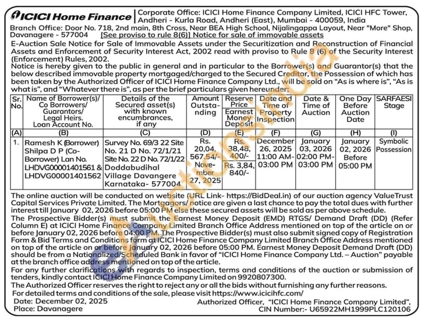 Survey No. 69/3 22 Site No. 21 D No. 72/1/21 Site No. 22 D No. 72/1/22 Village Davangere Doddabudihal Karnataka-577004