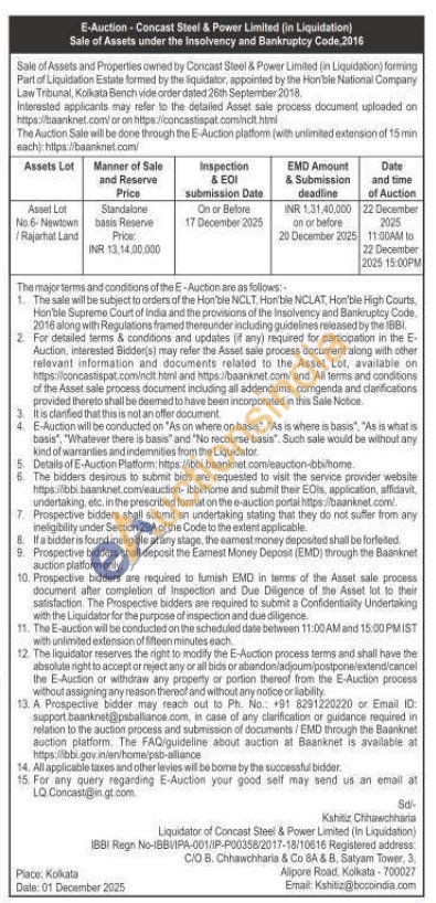Assets Lot :- Asset Lot No.6-Newtown Rajarhat Land