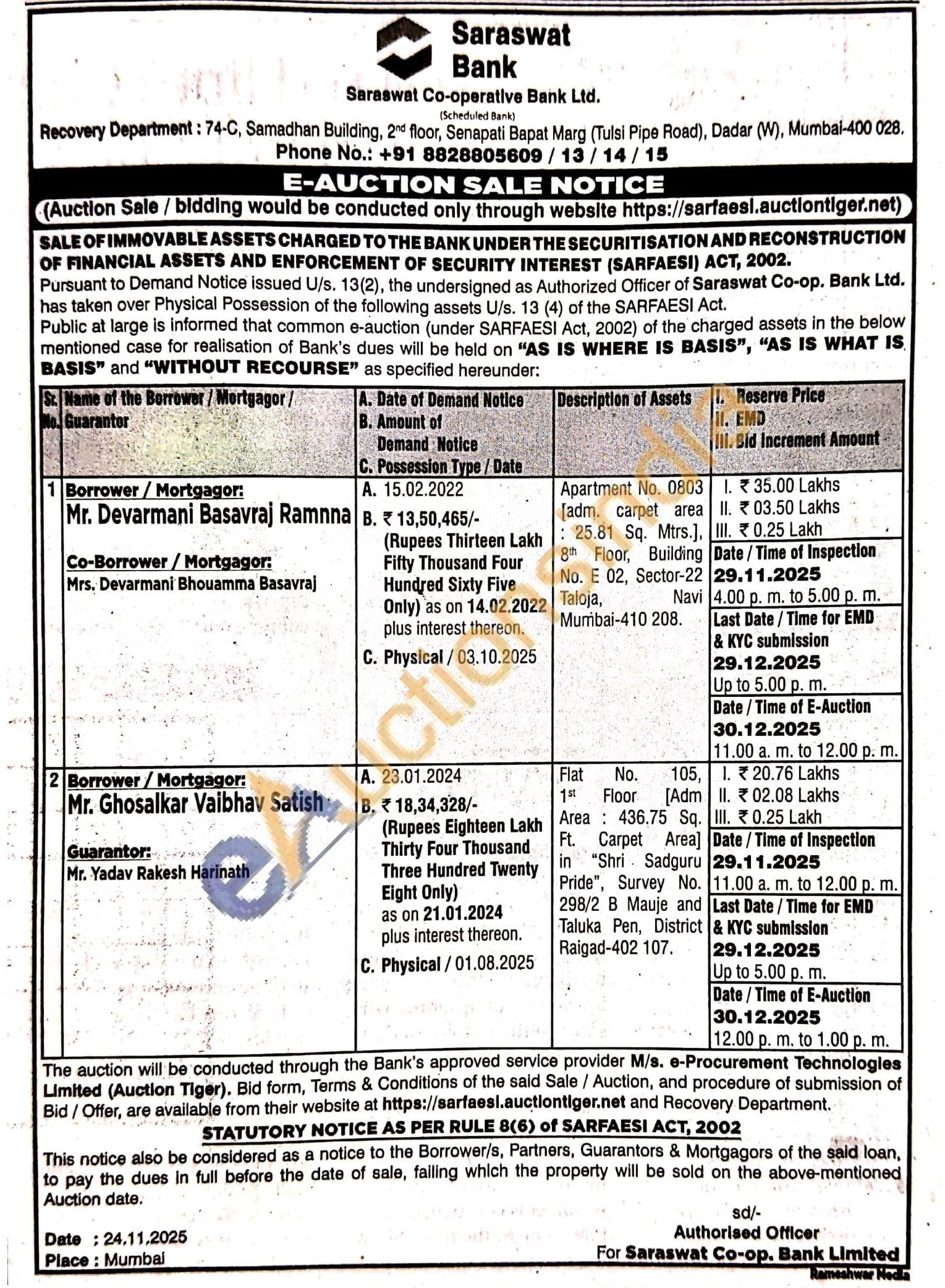 Apartment No. 0803 [adm. carpet area 25.81 Sq. Mtrs.], 8th Floor, Building No. E 02, Sector-22 Taloja, Navi Mumbai-410 208
