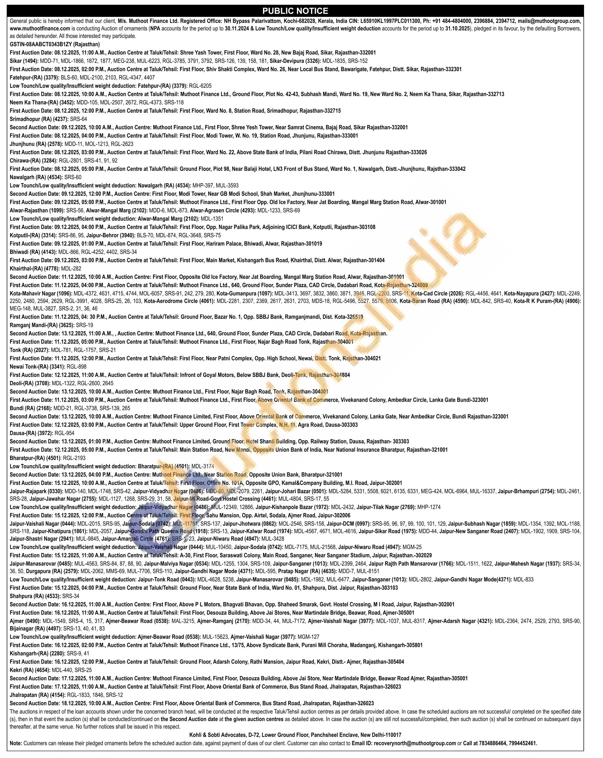 Muthoot Finance Ltd Gold Auctions Auction in New Delhi