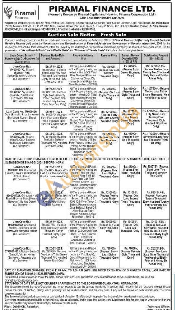 All The piece and Parcel of the Property having an Extent Flat No D-3 1203 12th Floor Tower D Delight Residency Apina Ghar Buldwell Block D3 Alwar Bypass Road Bhiwadi Rajasthan Alwar Rajasthan 301019