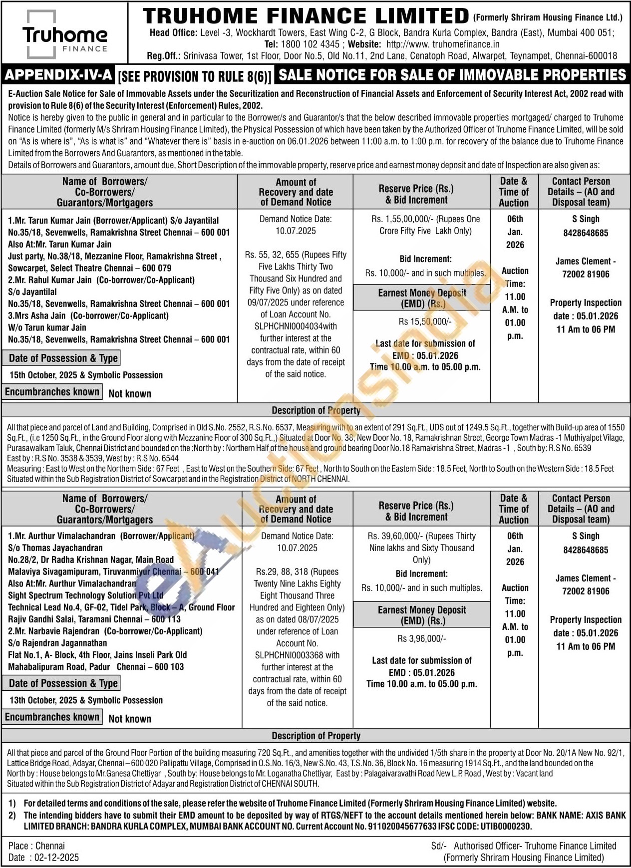 Situated within the Sub Registration District of Sowcarpet and in the Registration District of NORTH CHENNAI