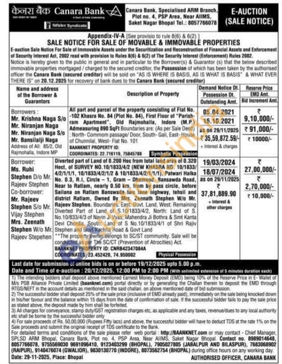 All part and parcel of the property consisting of Flat No. -102 Khasra No. 84 (Plot No. 84), First Floor of "Parish-ram Apartment", Old Rajmohalla, Indore (M.P.) Admeasuring 890 SqFt Boundaries are: (As per Sale Deed) North- Commom passage/Door, South-Galli, East-House of Chunnilal, West-Flat No. 101