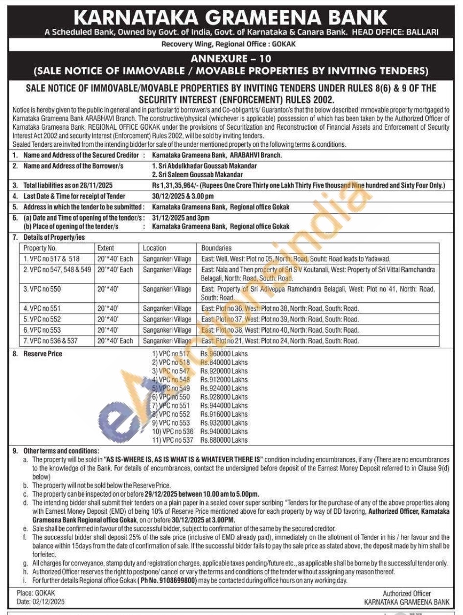 Boundaries : East: Nala and Then property of Sri SV Koutanali, West: Property of Sri Vittal Ramchandra Belagali, North: Road, South: Road