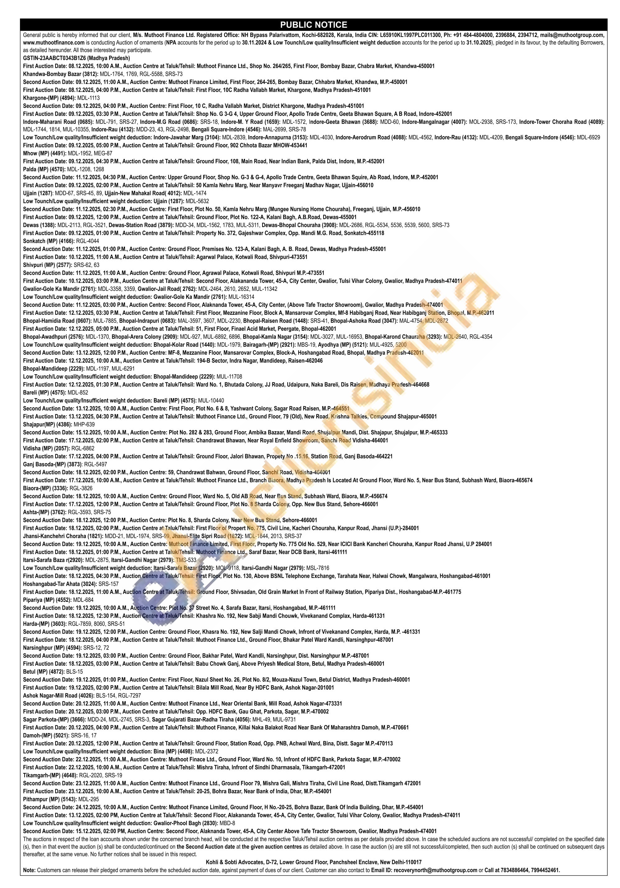 Muthoot Finance Ltd Gold Auctions Auction in Kochi