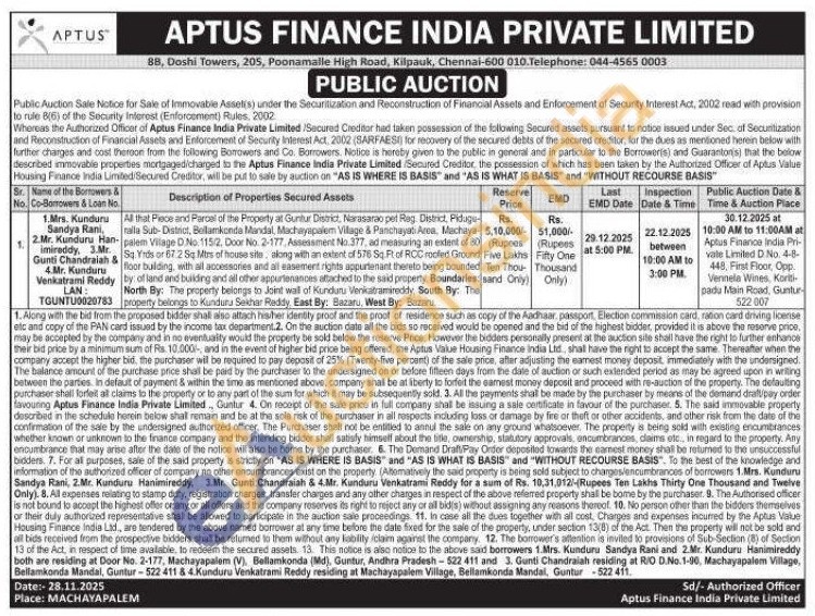 All that Piece and Partel of the Property at Guntur District, Narasarao pet Reg. District, Pidage ralla Sub-District, Bollamkonda Mandal, Michayapalem Village & Panchayati Area, Machaya-Han-palem Village D No. 115/2. Door No. 2-177, Assessment No. 377, ad measuring an extent of 80 & Sq Yrds or 67.2 Sq Mts of house sits, along with an extent of 576 Sq. Ft. of RCC rocked Ground floor building, with all accessories and all easement rights appurtenant thereto being bounded by of land and building and all other appurtenances attached to the said property. Boundaries: North By: The property belongs to Joint wall of Kunduru Venkatramireddy, South By: The TGUNTU0020783 property belongs to Kunduru Sekhar Reddy, East By: Bazaru, West By: Bazaru
