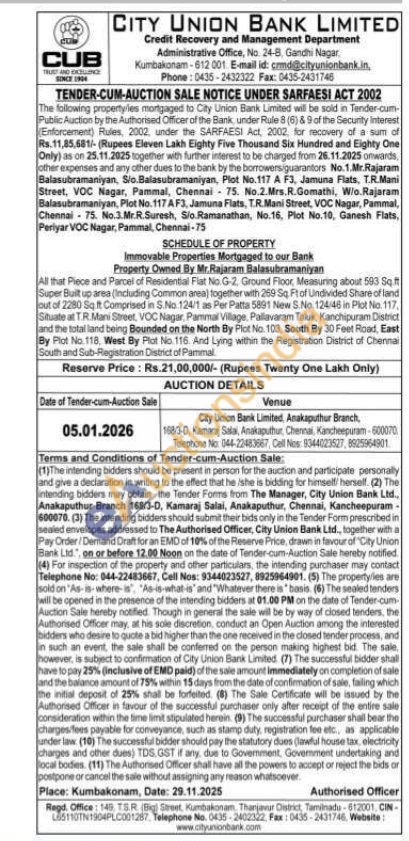 All that Piece and Parcel of Residential Flat No. G-2. Ground Floor, Measuring about 593 Sqft Super Built up area (Including Common area) together with 259 Sq Ft of Undivided Share of land out of 2280 Sq ft Comprised in S.No. 124/1 as Per Patta 5891 New S.No. 124/46 in Plot No. 117, Situate at TR.Mani Street, VOC Nagar, Panimal Village. Pallavaram Taluk, Kanchipuram District and the total land being Bounded on the North By Plot No. 103, South By 30 Feet Road, East By Plot No 118, West By Plot No 116. And Lying within the Registration District of Chennai South and Sub-Registration District of Pammal