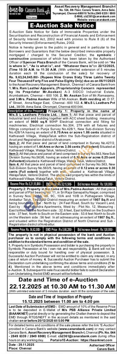 All that piece and parcel of Plot bearing No. 11, in Sri Raja Ganapathy Nagar, comprised in Survey Nos. 24/9A, 9B, 9C, 10/A and 10/B in Puthagaram Village, Ambattur Taluk, Tiruvallur District measuring an extent of 1907 Sq.ft and being bounded on the North by: 24 Feet Road, South by: Vacant Land, East by Raghavendra Apartments, West by Plot No. 12, Measuring: East toWeston the Northern side: 32.6 feet, East toWeston the Southern side: 37 feet, North to South on the Eastem side: 53.6 feet North to South on the Western side: 56 feet In all admeasuring an extent of 1907 Sq.ft., and situated within the Registration District of North Chennai and Sub -Registration district of Ambattur.
