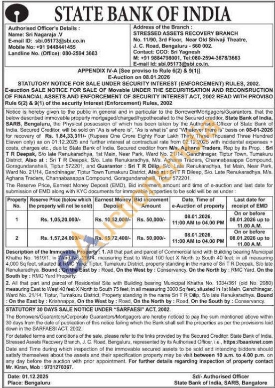 Authorised Officer's Details: Sri Nagaraja V Mobile No: +91 9448441455 / Landline No (Office): 08025943663
