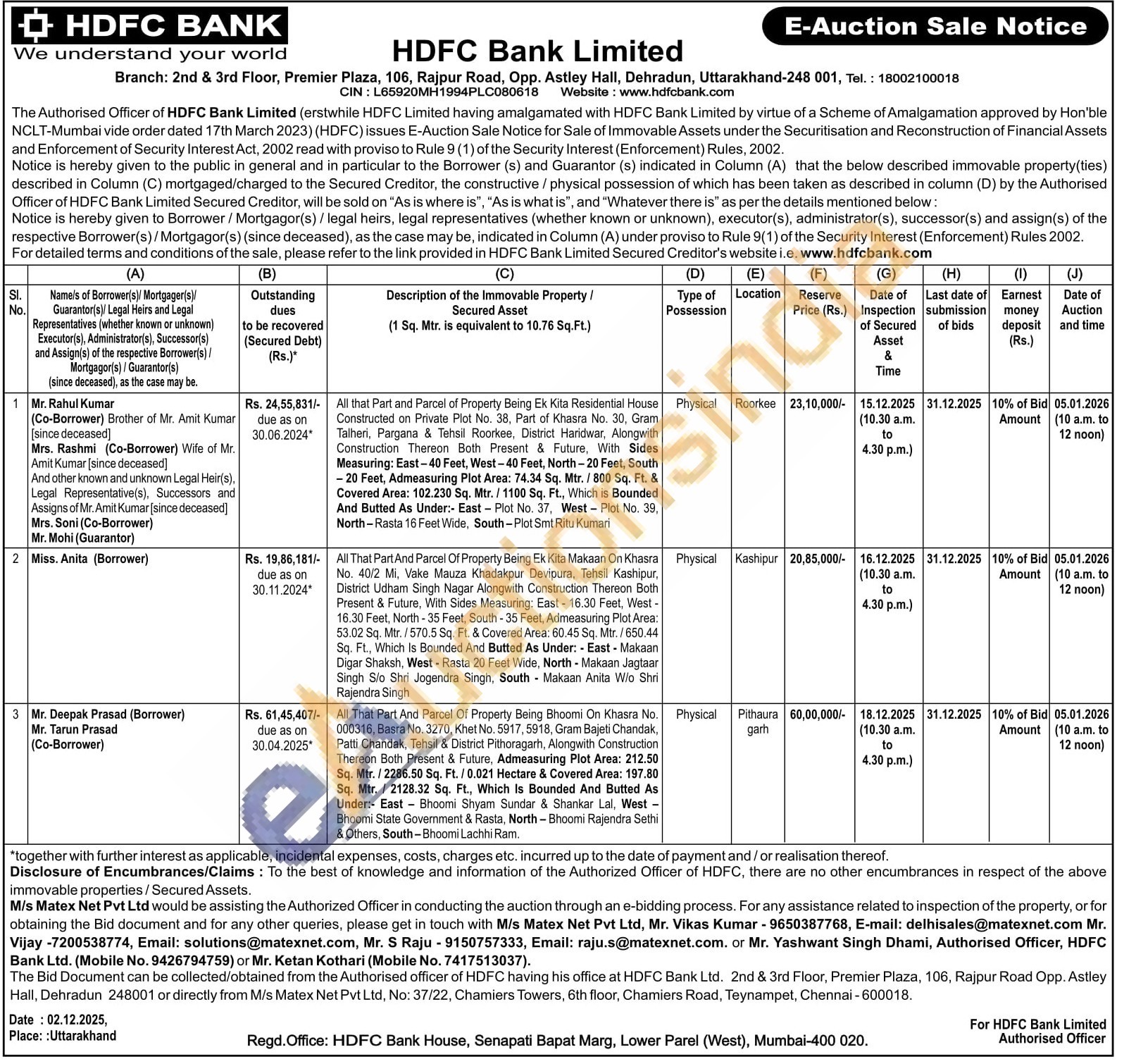 All That Part And Parcel Of Property Being Bhoomi On Khasra No. 000316, Basra No. 3270, Khet No. 5917, 5918, Gram Bajeti Chandak, Patti Chandak, Tehsil & District Pithoragarh, Alongwith Construction Thereon Both Present & Future, Admeasuring Plot Area: 212.50 Sq. Mtr./2286.50 Sq. Ft. /0.021 Hectare & Covered Area: 197.80 Sq. Mtr./2128.32 Sq. Ft., Which Is Bounded And Butted As Under: East Bhoomi Shyam Sundar & Shankar Lal, West -Bhoomi State Govemment & Rasta, North-Bhoomi Rajendra Sethi & Others, South-Bhoomi Lachhi Ram,