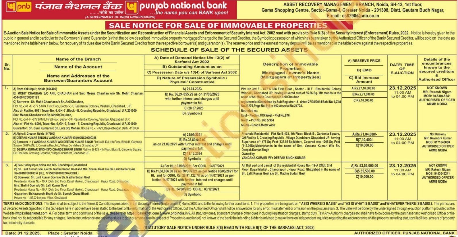 Branch Name : ASSET RECOVERY MANAGEMENT BRANCH NOIDA