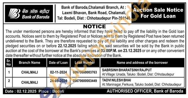 Bank of Baroda Gold Auctions Auction in Chhotaudepur