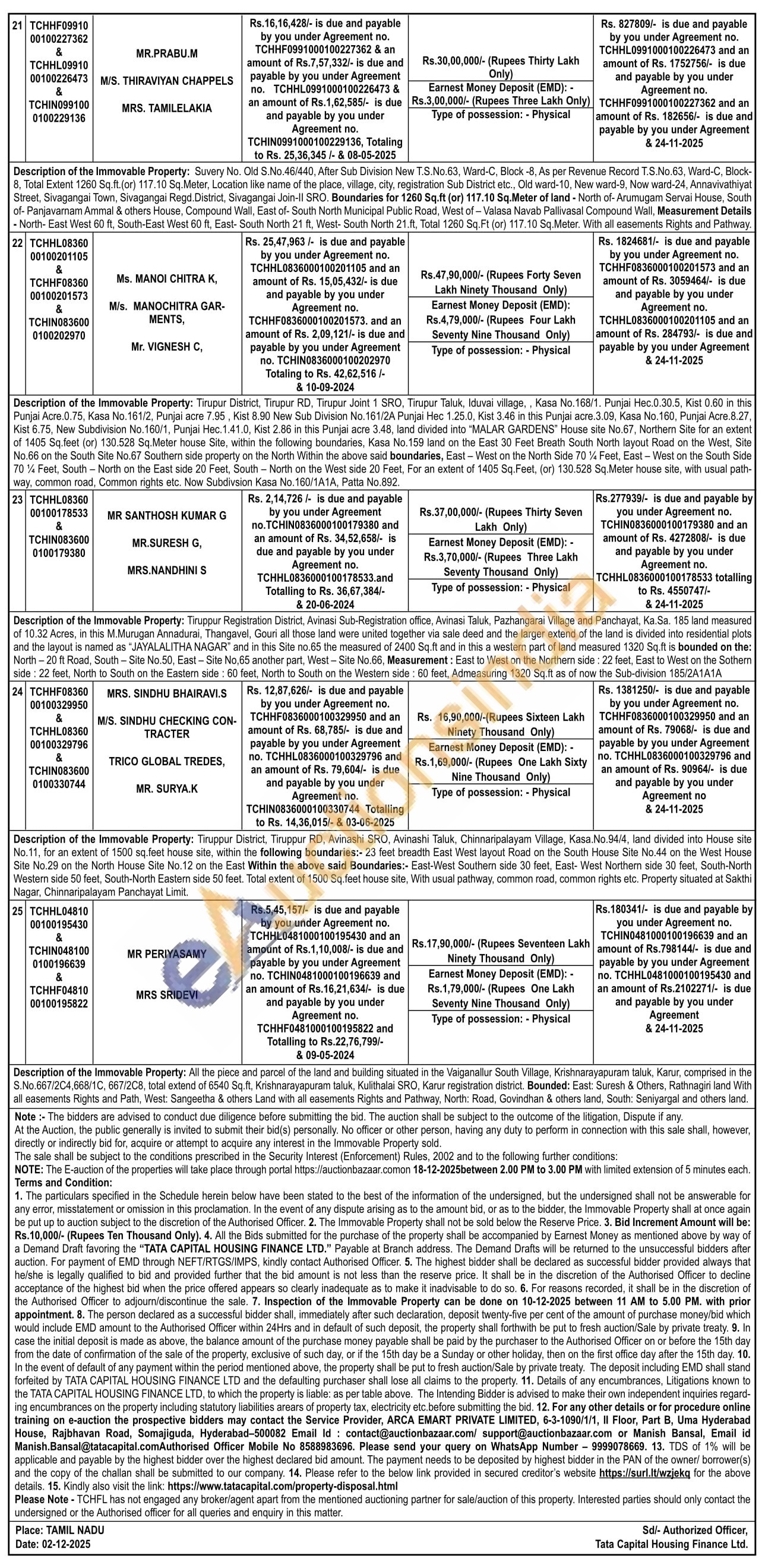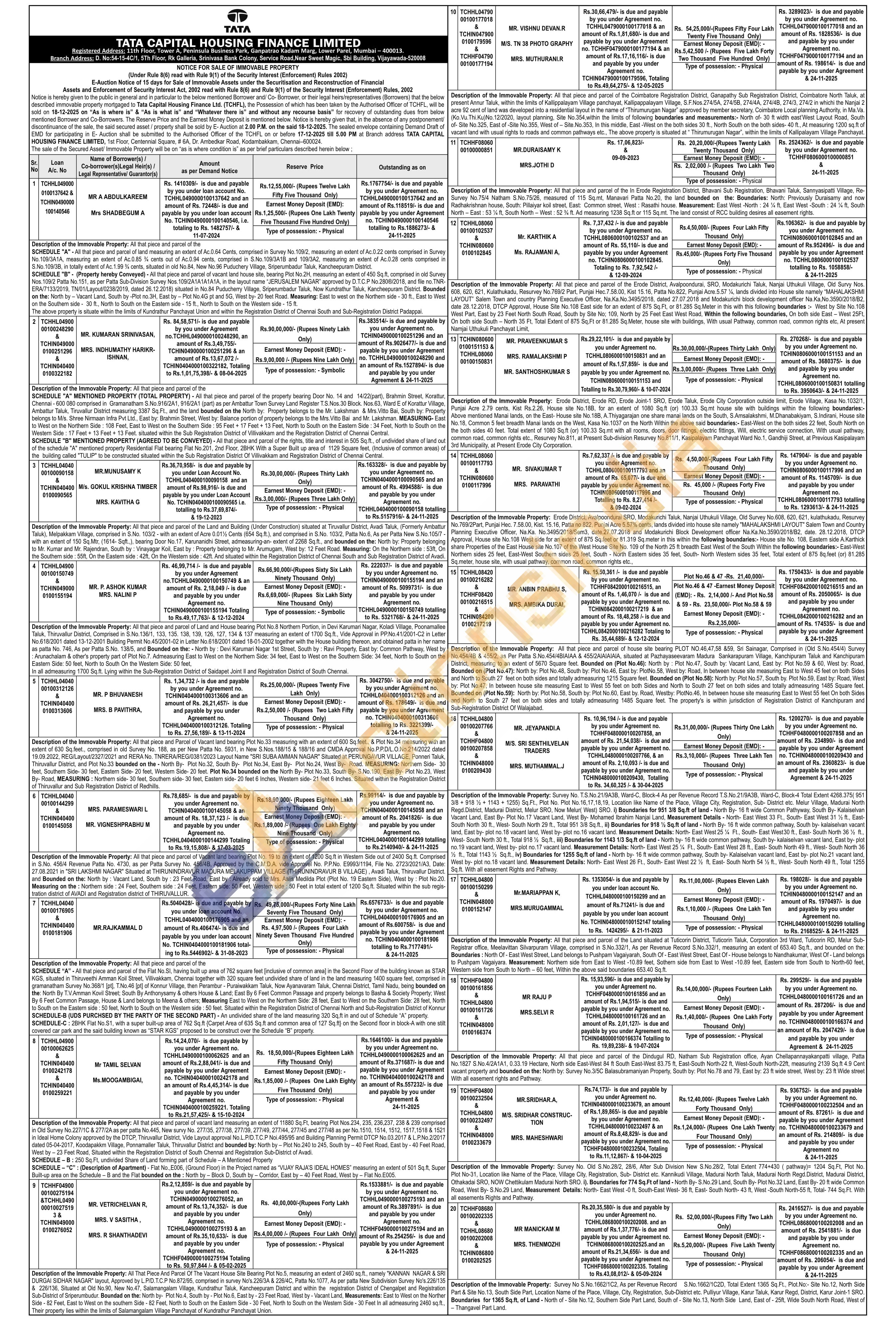 Description of the Immovable Property: All that piece and parcel of the Dindugul RD, Natham Sub Registration office, Ayan Chellapannayakanpatti village, Patta No.1827 S.No.4/2A1A1, 0.33.19 Hectare, North side East-West 84 ft South East-West 83.75 ft, East-South North-22 ft, West-South North-22ft, measuring 2139 Sq.ft 4.9 Cent vacant property and bounded on the: North by: Survey No.3/5C Balasubramaniyan Property, South by: Plot No.78 and 79, East by: 23 ft wide street, West by: 23 ft Wide street With all easement rights and Pathway