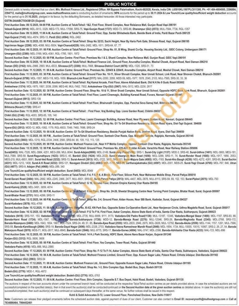 Muthoot Finance Ltd Gold Auctions Auction in Valsad