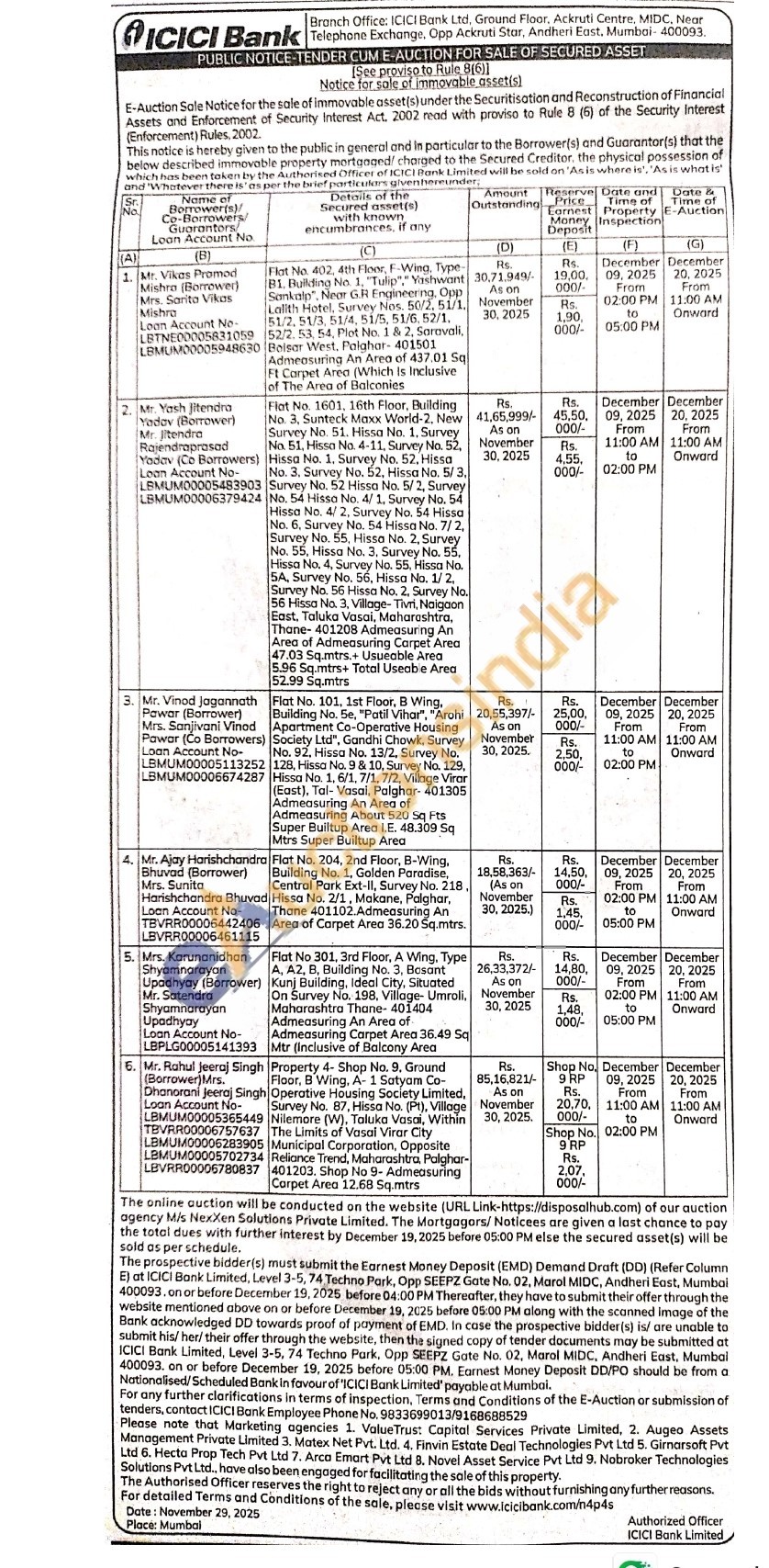 Flat No. 204, 2nd Floor, B-Wing. Building No. 1, Golden Paradise, Central Park Ext-II, Survey No. 218, Hissa No. 2/1, Makane, Palghar, Thane 401102.Admeasuring An Area of Carpet Area 36.20 Sq.mtrs.