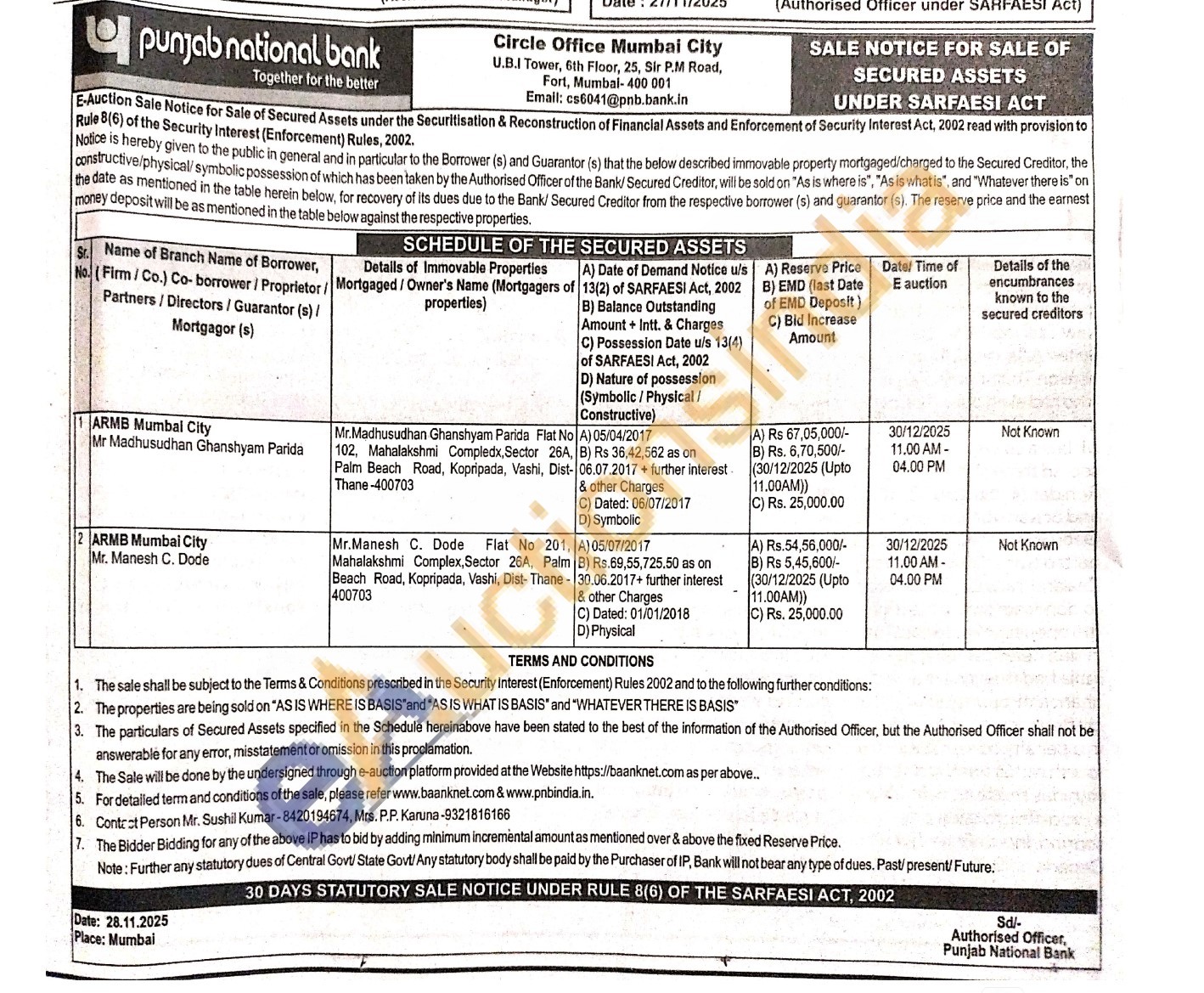 Mr.Madhusudhan Ghanshyam Parida Flat No 102, Mahalakshmi Compledx, Sector 26A, Palm Beach Road, Kopripada, Vashi, Dist-Thane-400703