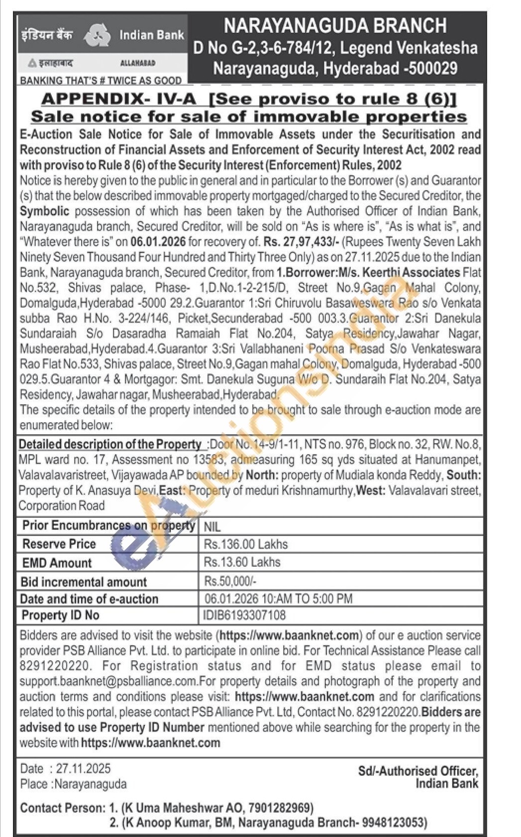 Detailed description of the Property Door No.14-9/1-11, NTS no. 976, Block no. 32, RW. No.8, MPL ward no. 17, Assessment no 13583, admeasuring 165 sq yds situated at Hanumanpet, Valavalavaristreet, Vijayawada AP bounded by North: property of Mudiala konda Reddy, South: Property of K. Anasuya Devi, East: Property of meduri Krishnamurthy, West: Valavalavari street, Corporation Road