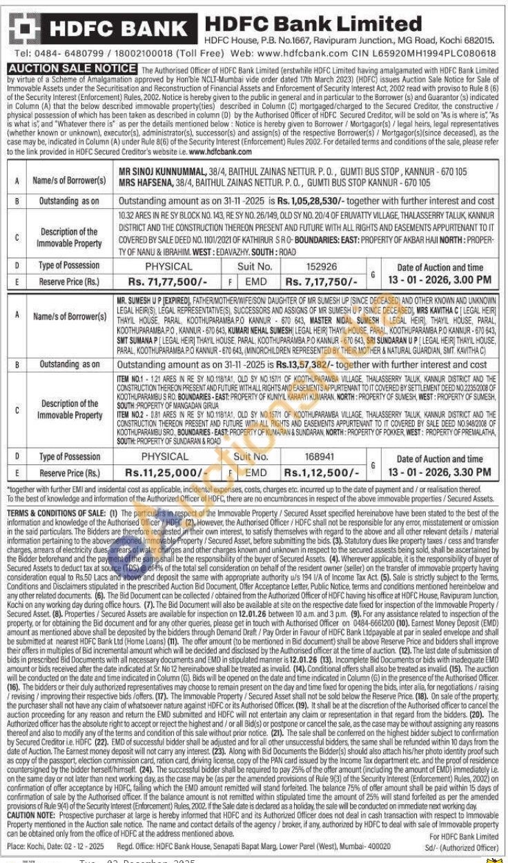 10.32 ARES IN RE SY BLOCK NO. 143, RE SY NO. 26/149, OLD SY NO. 20/4 OF ERUVATTY VILLAGE, THALASSERRY TALLIK, KANNUR DISTRICT AND THE CONSTRUCTION THEREON PRESENT AND FUTURE WITH ALL RIGHTS AND EASEMENTS APPURTENANT TO IT COVERED BY SALE DEED NO. 1101/2021 OF KATHIRUR SRO-BOUNDARIES: EAST: PROPERTY OF AKBAR HAJI NORTH: PROPER TY OF NANU & IBRAHIM WEST: EDAVAZHY, SOUTH: ROAD