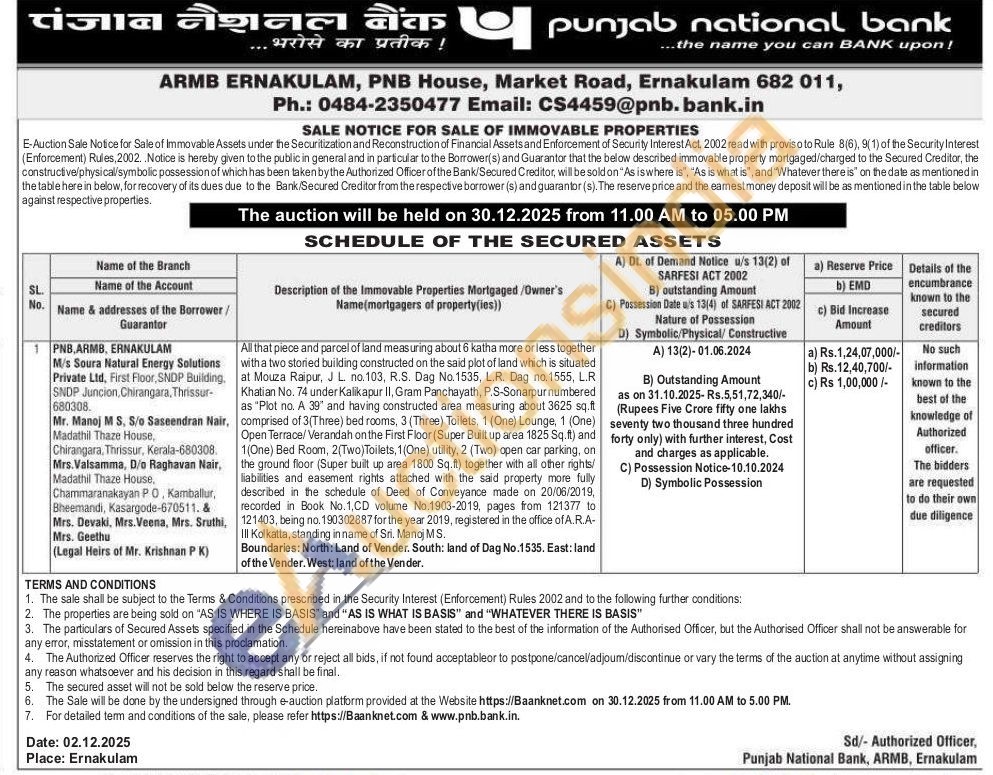 All that piece and parcel of land measuring about 6 katha more or less together with a two storied building constructed on the said plot of land which is situated at Mouza Raipur, J L. no.103, R.S. Dag No.1535, L.R. Dag no.1555, L.R Khatian No. 74 under Kalikapur II, Gram Panchayath, P.S-Sonarpur numbered as "Plot no. A 39" and having constructed area measuring about 3625 sq.ft comprised of 3(Three) bed rooms, 3 (Three) Toilets, 1 (One) Lounge, 1 (One) Open Terrace/Verandah on the First Floor (Super Built up area 1825 Sq.ft) and 1(One) Bed Room, 2(Two) Toilets, 1 (One) utility, 2 (Two) open car parking, on the ground floor (Super built up area 1800 Sq.ft) together with all other rights/liabilities and easement rights attached with the said property more fully described in the schedule of Deed of Conveyance made on 20/06/2019, recorded in Book No.1,CD volume No.1903-2019, pages from 121377 to 121403, being no. 190302887 for the year 2019, registered in the office of A.R.A-III Kolkatta, standing in name of Sri. Manoj MS.