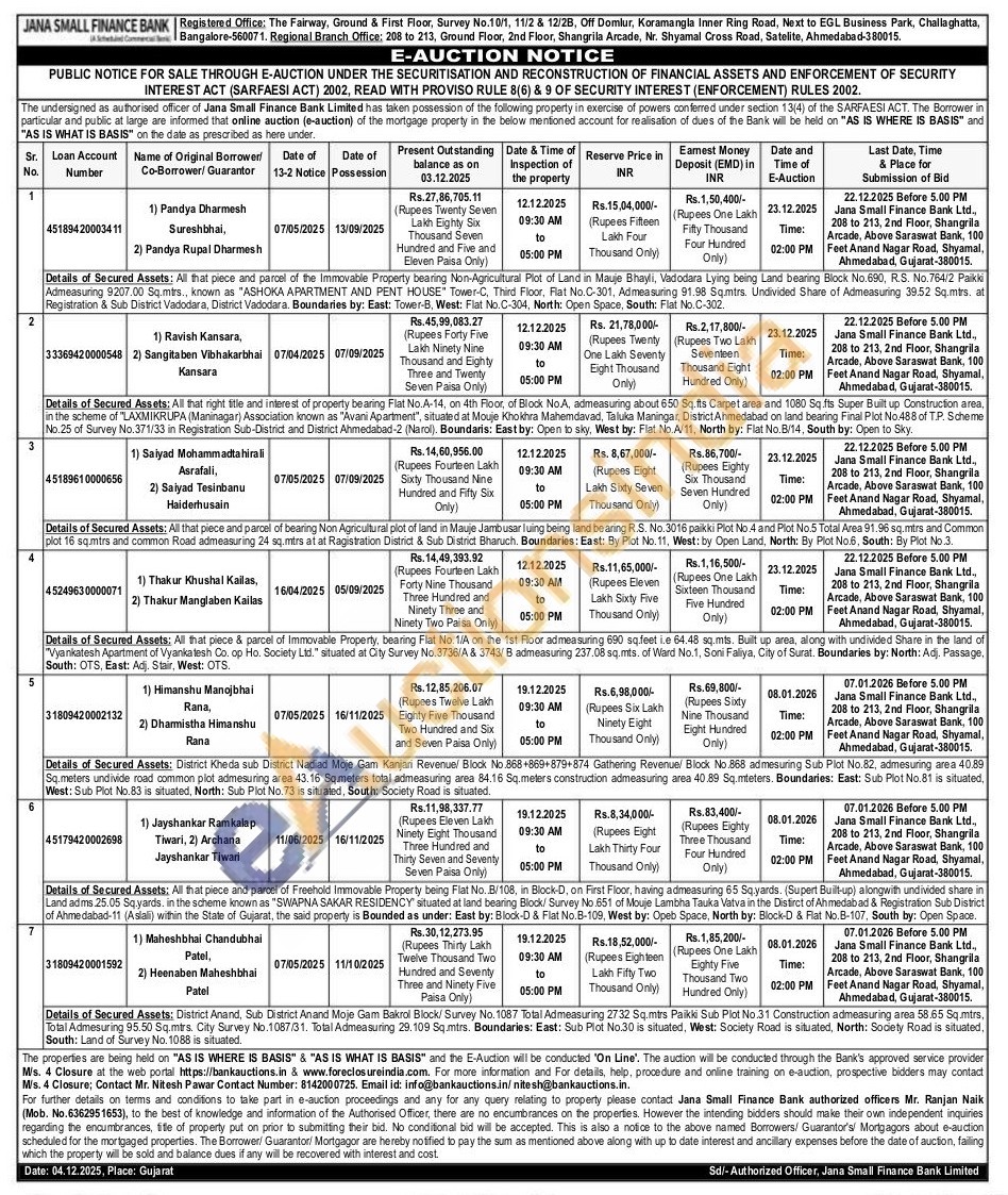 Details of Secured Assets: District Anand, Sub District Anand Moje Gam Bakrol Block/ Survey No. 1087 Total Admeasuring 2732 Sq.mtrs Paikki Sub Plot No 31 Construction admeasuring area 58.65 Sq.mtrs, Total Admesuring 95.50 Sq.mtrs. City Survey No.1087/31. Total Admeasuring 29.109 Sq.mtrs. Boundaries: East: Sub Plot No.30 is situated, West: Society Road is situated, North: Socety Road is situated, South: Land of Survey No. 1088 is situated.