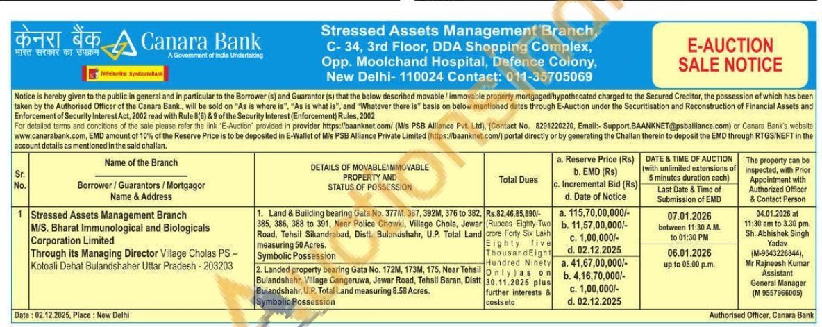 1. Land & Building bearing Gata No. 377M, 387, 392M, 376 to 382, 385, 386, 388 to 391, Near Police Chowki, Village Chola, Jewar Road, Tehsil Sikandrabad, Distt. Bulandshahr, U.P. Total Land measuring 50 Acres