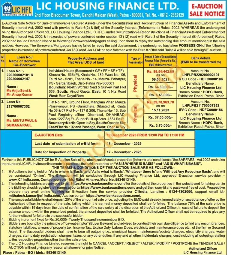 Individual House (Basement+GF+FF+SF+TF) Khesra No.-536 (P), Khata No.- 189, Ward No.-06, Tauzi No.-5281, Thana No.-14, Mauza-Paharpur, PS-Gardanibagh, Dist-Patna Pin-800001 Boundary: North: 9ft Niz Road & Survey Part Plot 536, South: Vinod Gupta, East: 10 ft Niz Road West: Ram Dayal Ram
