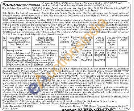 Flat No. L-525, 5th floor, Swapon Nilay, Khasra No. 314/463, 314/462 Village Mathurowala, Mathurawala, Tehsi Tehsil Sanganer and Jaipur. Rajasthan 303905