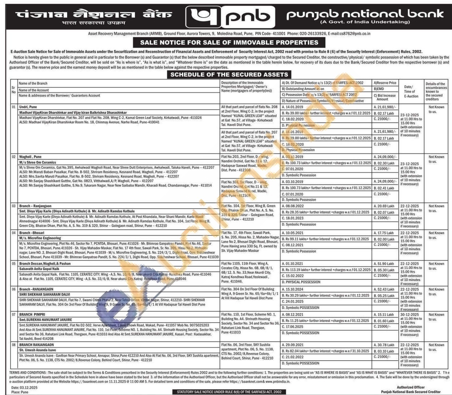All that part and parcel of flats No. 207 at 2nd Floor, Wing C-2, in the project Named "KUNAL GREEN LEAF situated at Gat No.57, at Village- Kirkatwadi Tal. Haveli Dist Pune.