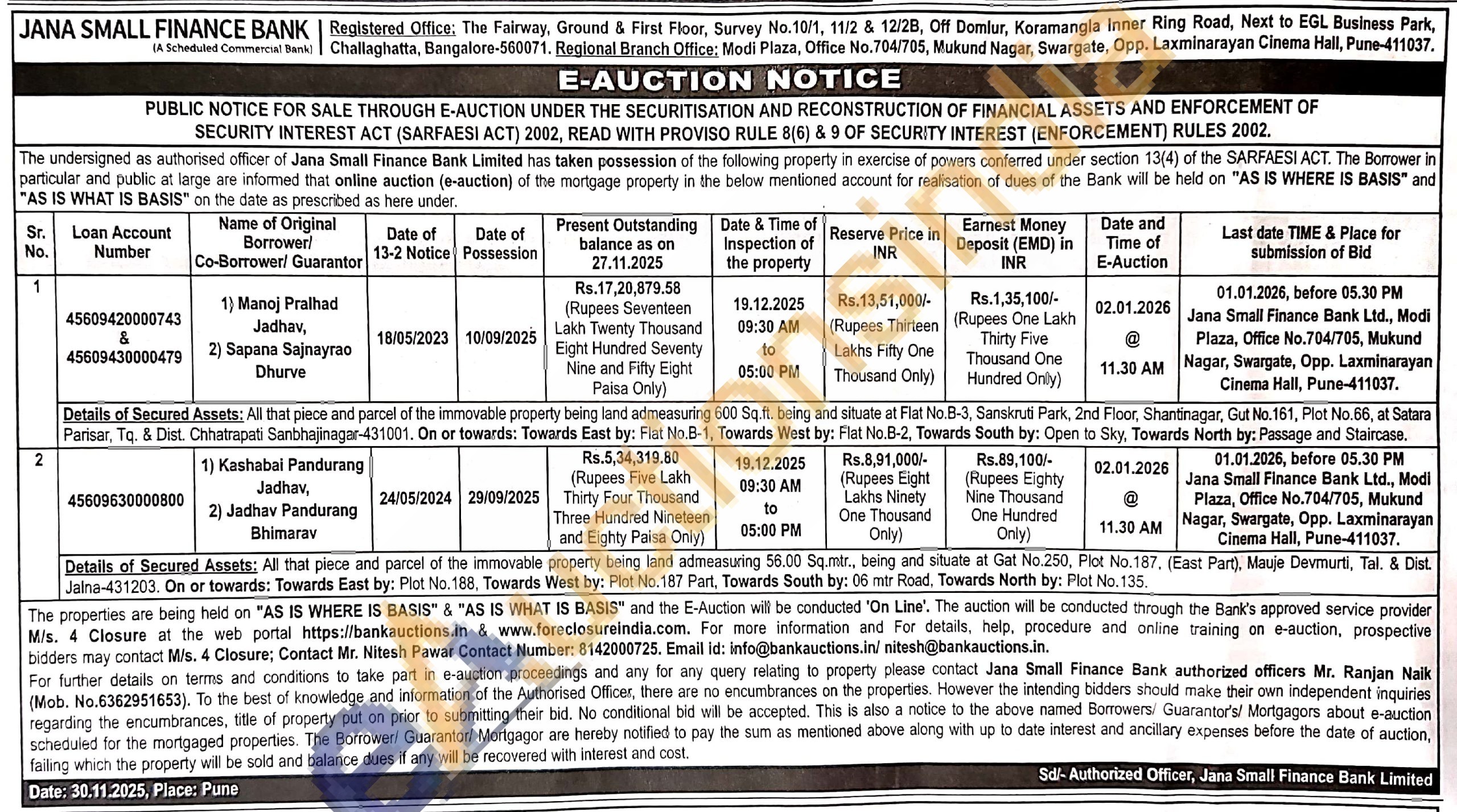 2) All that piece and parcel of the immovable property being land admeasuring 600 Sq.ft. being and situate at Flat No.B-3, Sanskruti Park, 2nd Floor, Shantinagar, Gut No. 161, Plot No.66, at Satara Parisar, Tq. & Dist. Chhatrapati Sanbhajinagar-431001. On or towards: Towards East by: Flat No.B-1, Towards West by: Flat No.B-2, Towards South by: Open to Sky, Towards North by: Passage and Staircase