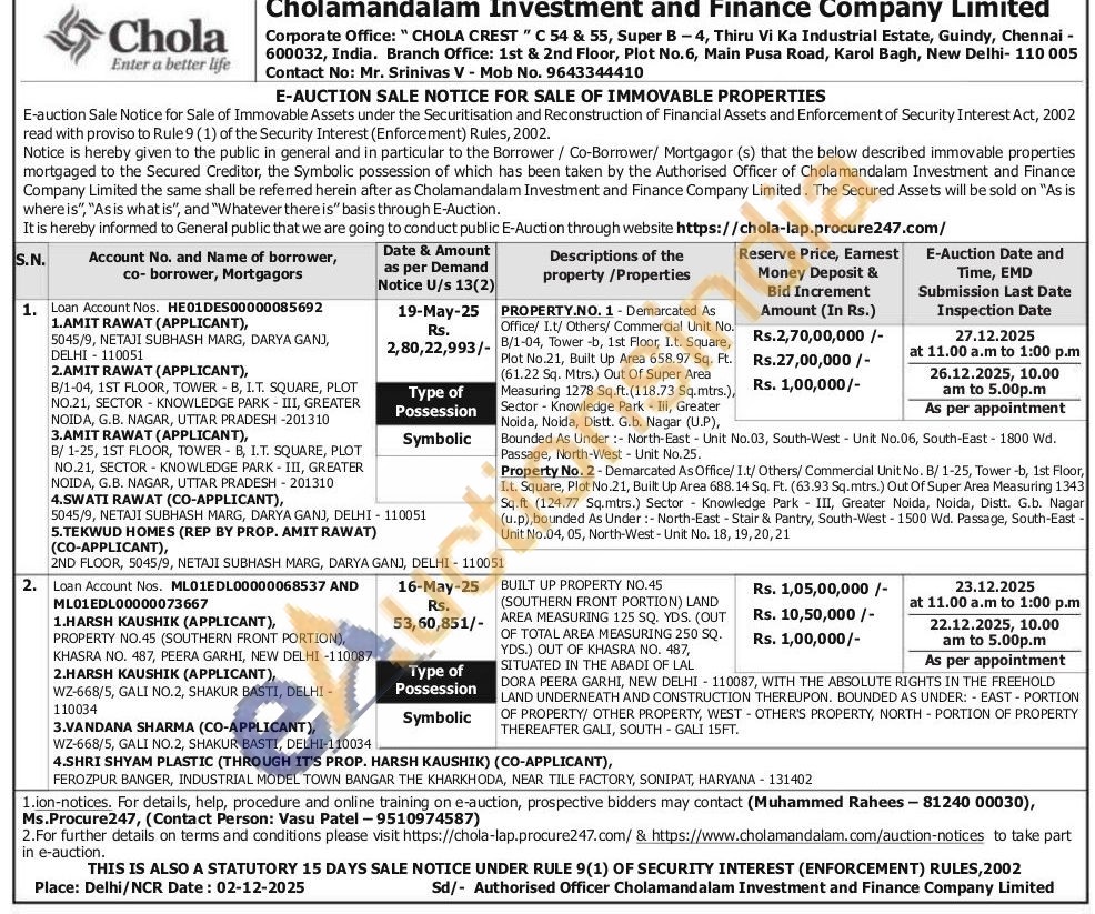 PROPERTY.NO. 1- Demarcated As Office/I.t/ Others/Commercial Unit No. 8/1-04, Tower -b, 1st Floor, I.t. Square, Plot No.21, Built Up Area 658.97 Sq. Ft. (61.22 Sq. Mtrs.) Out Of Super Area Measuring 1278 Sq.ft. (118.73 Sq.mtrs.), Sector Knowledge Park Iii, Greater Noida, Noida, Distt. G.b. Nagar (U.P),Bounded As Under: North-East Unit No.03, South-West Unit No.06, South-East-1800 Wd. Passage, North-West - Unit No.25. Property No. 2-Demarcated As Office/I.t/Others/Commercial Unit No. B/ 1-25, Tower -b, 1st Floor, I.t. Square, Plot No.21, Built Up Area 688.14 Sq. Ft. (63.93 Sq.mtrs.) Out Of Super Area Measuring 1343 Sq.ft (124.77 Sq.mtrs.) Sector Knowledge Park III, Greater Noida, Noida, Distt. G.b. Nagar (u.p), bounded As Under :- North-East - Stair & Pantry, South-West-1500 Wd. Passage, South-East -Unit No.04, 05, North-West-Unit No. 18, 19, 20, 21