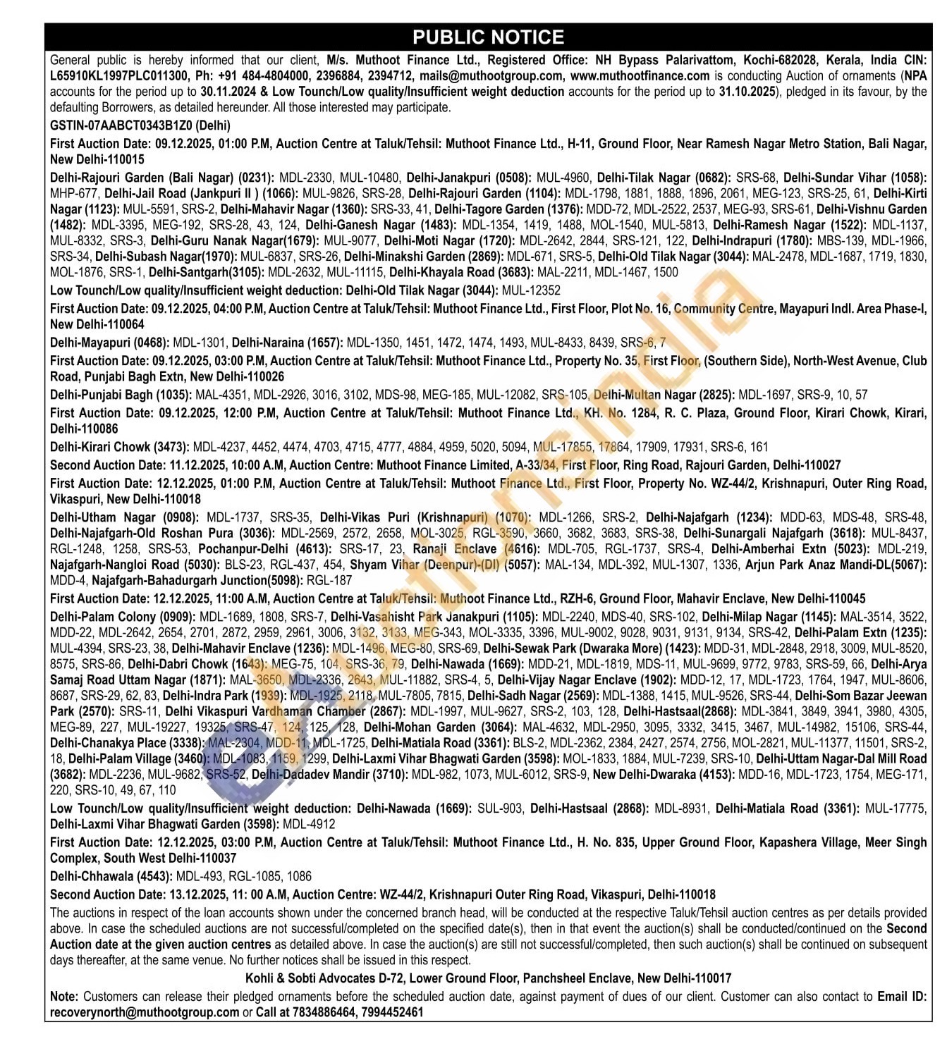 Muthoot Finance Ltd Gold Auctions Auction in Kochi