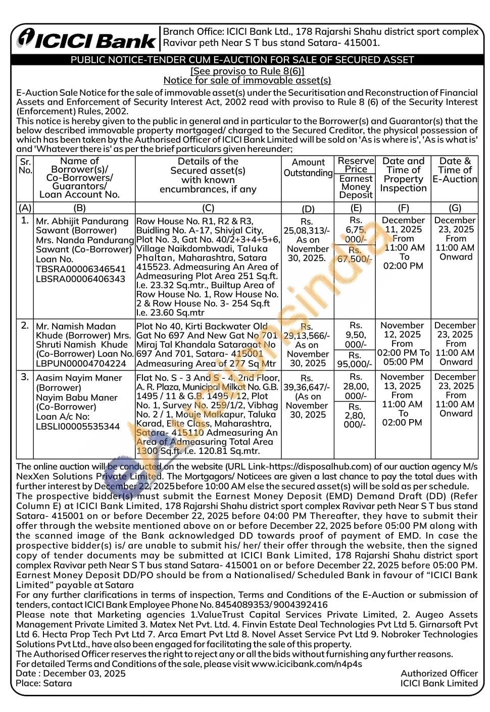 Row House No. R1, R2 & R3, Buidling No. A-17, Shivjal City, Plot No. 3, Gat No. 40/2+3+4+5+6, Village Naikdombwadi, Taluka Phaltan, Maharashtra, Satara 415523. Admeasuring An Area of Admeasuring Plot Area 251 Sq.ft. l.e. 23.32 Sq.mtr., Builtup Area of Row House No. 1, Row House No. 2 & Row House No. 3- 254 Sq.ft l.e. 23.60 Sq.mtr