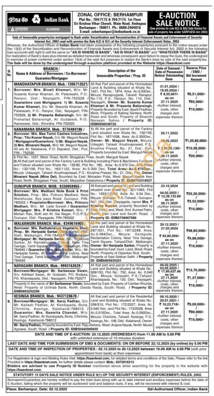 All that part and parcel of the Homestead Land and Building situated at Khata No.: 309/153, Plot No.: 702, Area: Ac. 0.040 Dec., Mouza: Golasahi, P.S./Tahasil: Khandapada, No.: 133, Dist: Nayagarh, bounded by East: Property of Cahitan Khuntia