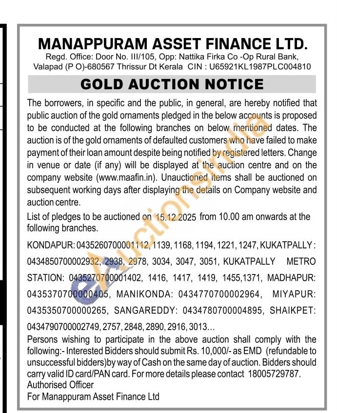 Manappuram Asset Finance Ltd Gold Auctions Auction in Thrissur
