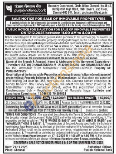 All that piece and parcel of land bearing Old Door No. 458, New Door No. 156, Gramma natham comprised in Survey No.58/11 New Survey No.216/36, full extent 181 Sq. meter (1948 Sq. ft) Meinaliathur Village, Kamarajar Street, within the registration District of Kancheepuram Sub Registration District of Manavata Nagar Latitude and Longitudes Coordinates: 13.086333,79.907028