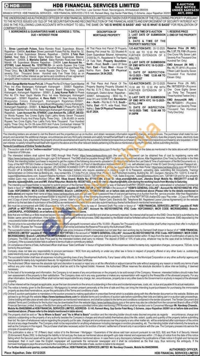 Authorised Officer: MR. Vikas Anand; Mobile No: 9711010384 / Jitendra Singh Mobile No : 9983291777 / MR. Vishal Ritpurkar Mobile No: 9833671006