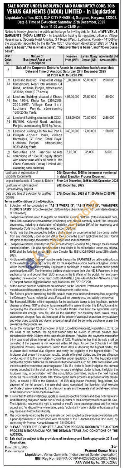 Lot A-2 : Land and Building, situated at Khasra No. 12/5-6, Khata No. 2354/2606, 2355/2607, Village Kara Bara, Ludhiana, Punjab, admeasuring 1300.25 Sq. Yards.