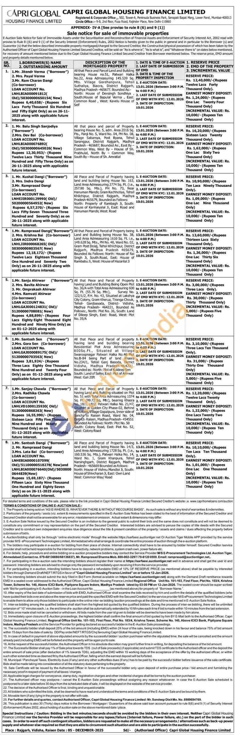 contact Authorised Officer, Capri Global Housing Finance Limited: Mr. Sandeep Dixit Mo. No. 8989694769