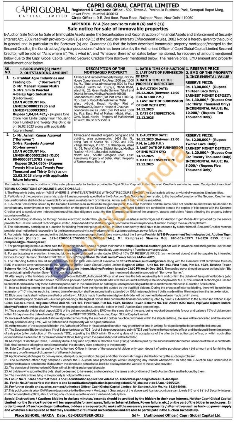 contact Authorised Officer, Capri Global Capital Limited: Mr. Sandesh Jain Mo. No. 8839140796