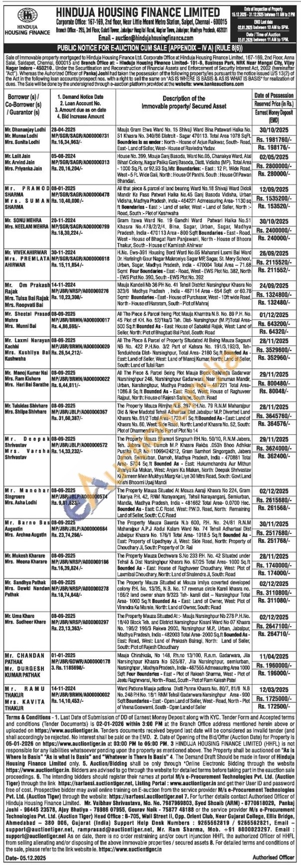 Contact Authorised Officer Mr. Vaibhav Shrivastava, Mo. No. 7987969803, Syed Shoaib (ARM)-8770818029, Pankaj Joshi-96445 23578, Ajay Bhatiya 78986 07955, Gourav Naik 75877 48188