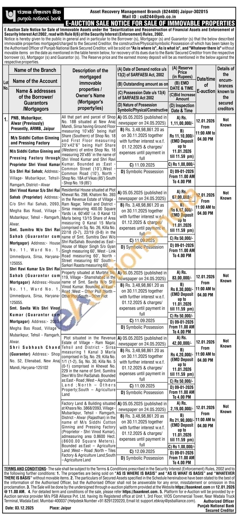 Residential House situated at Plot Khewat No. 298, Khatoni No. 303 Ram Nagar, Tehsil and District Sirsa measuring 400.00 Square Yards Le 60x60 in. 0 Kanal 13 Maria being 13/15 Share of of Ares Area measuring 0 Kanal 15 Maria comprised in Sq. No. 26, Kila No 22/18 (0-7), 22/19 (0-8) in the name of Sint. Semitra Devi Wio Shri RaiSahab Bounded as Fast-House of Major Singh Svo Gyan Singh measuring 60, West-Link Haryana-Road measuring 60, North Street measuring 60 South Sarkari Raasta measuring 60