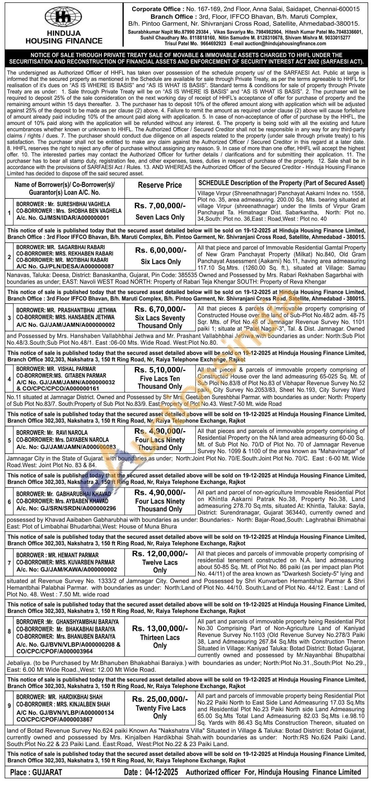 All part and parcels of immovable property being Residential Plot No.22 Paiki North to East Side Land Admeasuring 17.03 Sq.Mts and Residential Plot No.23 Paiki North side Land Admeasuring 65.00 Sq.Mts Total Land Admeasuring 82.03 Sq.Mts i.e.98.10 Sq. Yards with 86.43 Sq.Mts Construction Thereon, situated on land of Botad Revenue Survey No.624 paiki Known As "Nakshatra Villa" Situated in Village & Taluka: Botad District: Botad Gujarat, currently owned and possessed by Mrs. Kinjalben Hardikbhai Shah.with boundaries as under: North:RS No.624 Paiki Land. South: Plot No.22 & 23 Paiki Land. East: Road, West: Plot No.22 & 23 Paiki Land