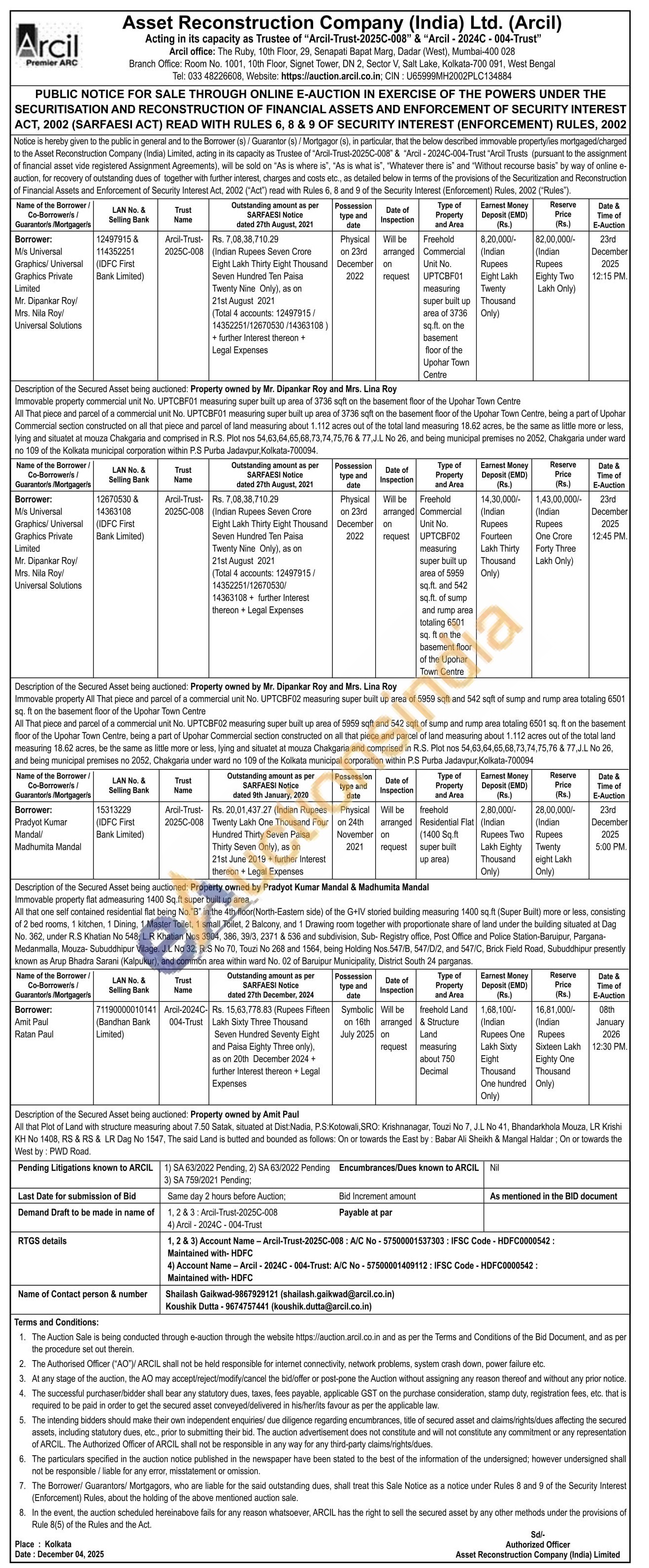 Description of the Secured Asset being auctioned: Property owned by Amit Paul All that Plot of Land with structure measuring about 7.50 Satak, situated at Dist:Nadia, P.S:Kotowali, SRO: Krishnanagar, Touzi No 7, J.L No 41, Bhandarkhola Mouza, LR Krishi KH No 1408, RS & RS & LR Dag No 1547, The said Land is butted and bounded as follows: On or towards the East by: Babar Ali Sheikh & Mangal Haldar: On or towards the West by: PWD Road