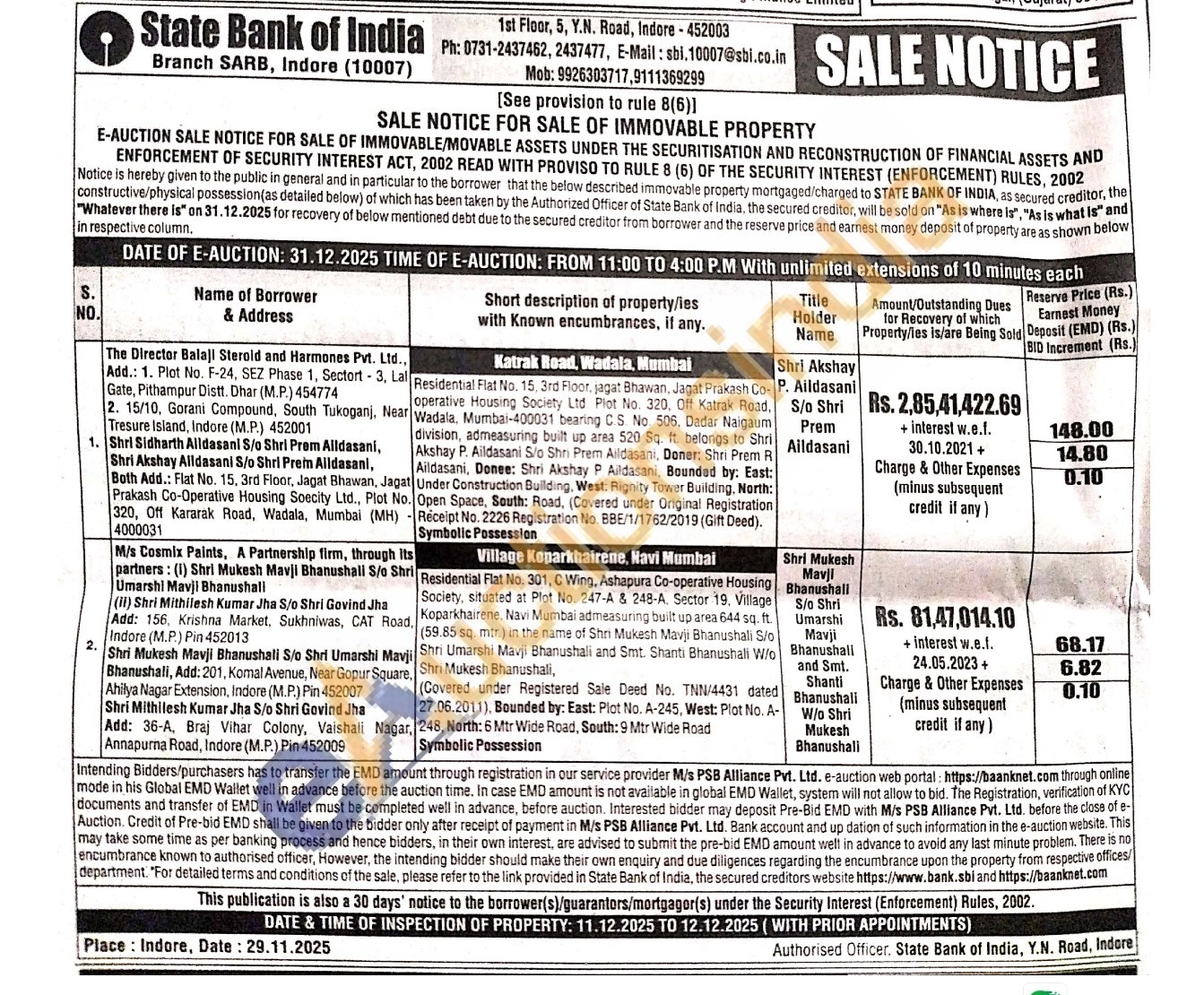 Residential Flat No. 15, 3rd Floor, jagat Bhawan, Jagat Prakash Co-operative Housing Society Ltd Plot No. 320, Off Katrak Road, Wadala, Mumbai-400031 bearing C.S No. 506, Dadar Naigaum division, admeasuring built up area 520 Sq. ft. belongs to Shri Akshay P. Aildasani Sio Shri Prem Aildasani, Doner: Shri Prem R Aildasani, Donee: Shri Akshay P Aildasani, Bounded by: East: Under Construction Building, West: Rignity Tower Building, North: Open Space, South: Road, (Covered under Original Registration Receipt No. 2226 Registration No. BBE/1/1762/2019 (Gift Deed). Symbolic Possession