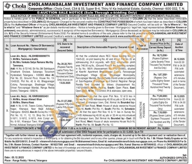 All that the undivided share RCC house building No. 13-134/5-22, on plot bearing No. 42 and 43, on Flat No. 22 an admeasuring 24,4 sq.yards, with RCC construction plinth area 746.00 sq.fts., (Ground Floor in the buiolding complex) in Sy. No. 180/A (Assessement No. 1187014065), situated at Keerthi Apartment Bhagyanagar Colony, Farooqnagar (Shadnagar) Village Shivar, Shadnagar Municipality. Farooqnagar Mandal, Ranga Reddy Disrict under jurusdiction of Sub-Registrar Frooqnagar and District Registrar Ranga Rerddy and bounded as follows (Assessement No. 1187014065). North: Parking, South: Open Place, East: Open place, West: 7'0 corridor, lift & staircase, open area.