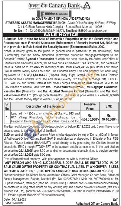 Mr. Kishor Mane Authorized Officer Mumbai (Phone No : 02226728744 / Mobile No : 8097590940) / Mr. Rupesh Pillewan Manager (Mobile No : 9380160126)