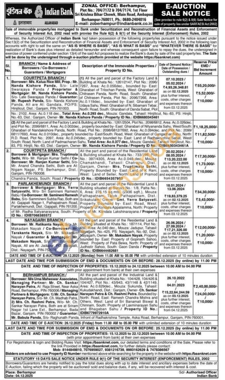 All the part and parcel of the Residential Land & Building situated at Survey No.: 1/8, Patta No.: 6. Area: 276.15 sq.mts. (2936 sqft.), Mouza: Pathapatnam, Taluk: Pathapatnam, Dist. Srikakulam